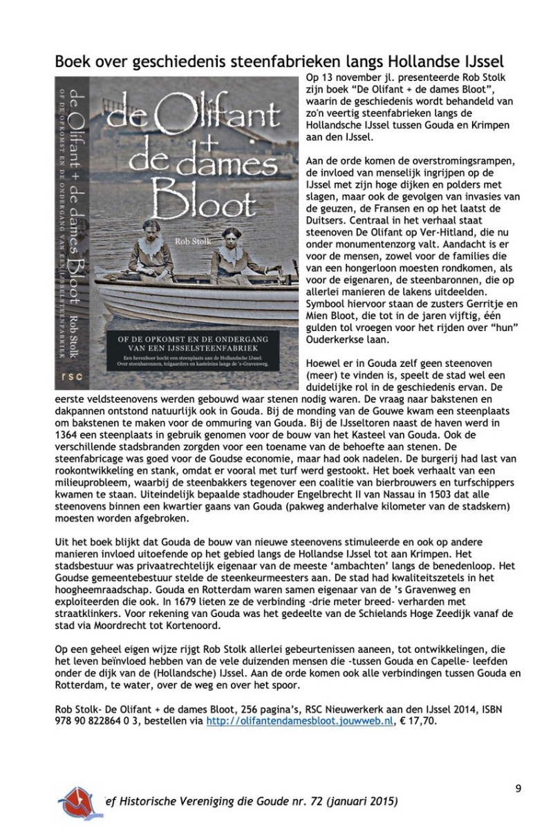 Recentie in de nieuwsbrief van Historische Verneniging die Gouda nr. 72 (januari 2015)
